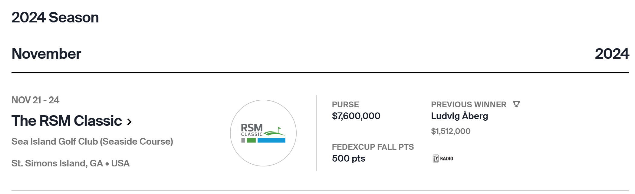 [2024.11월 PGA 경기일정]